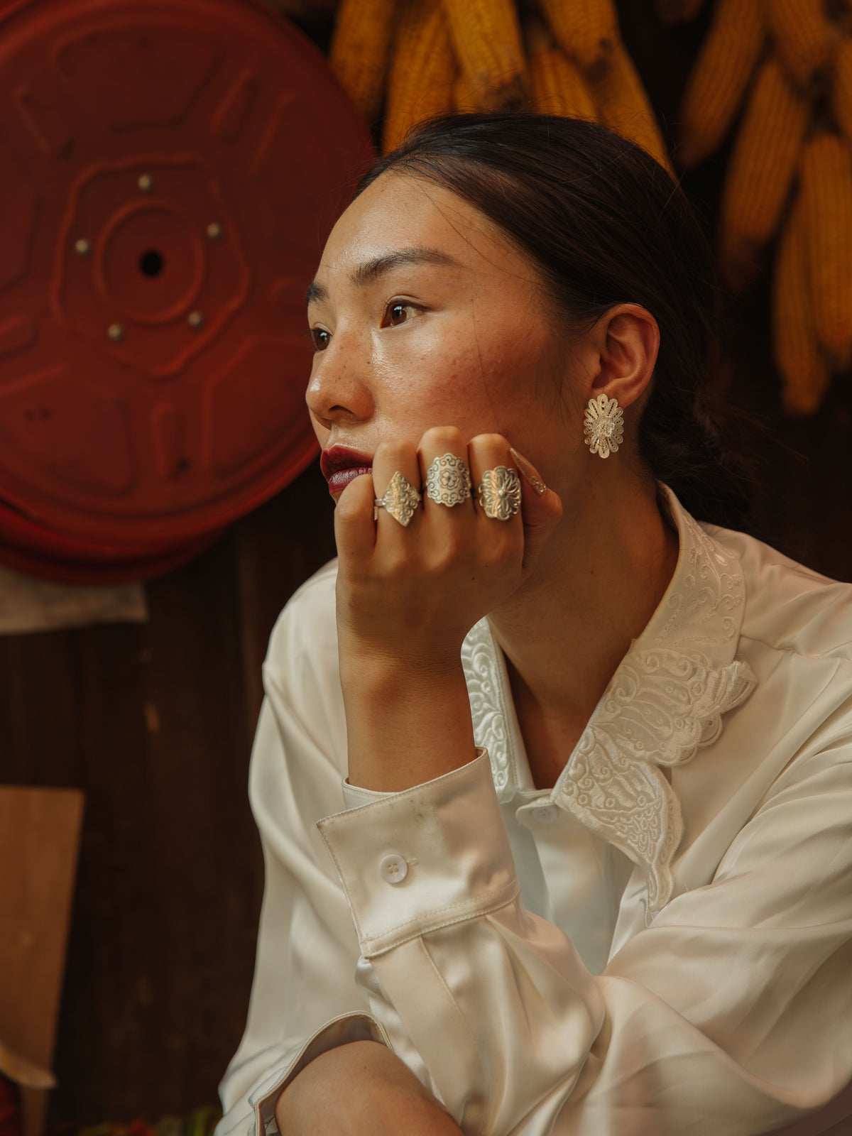 Each piece is shaped by Miao artisans using long-practised silverworking methods. The process is slow and deliberate, allowing the form to develop through measured handwork.